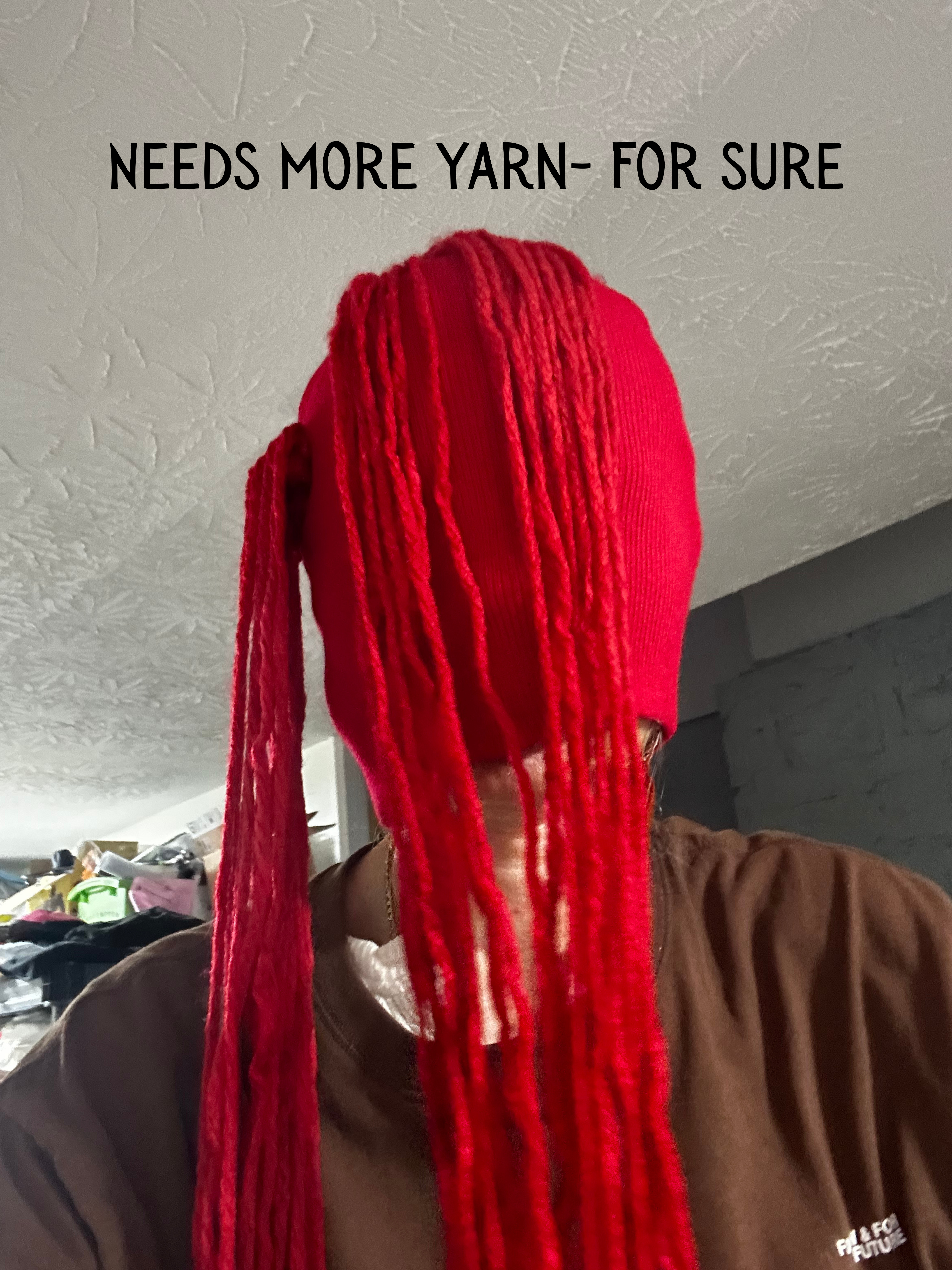 - Red yarn (a lot — at least one skein)